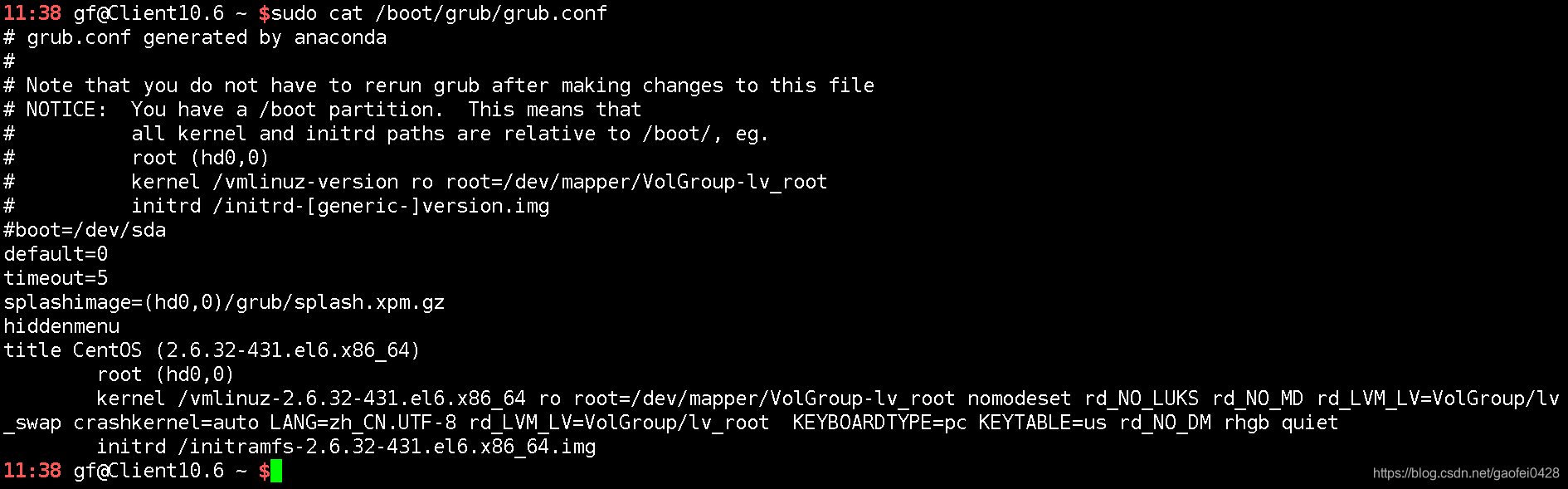 在这里grub.cfg配置文件已经比较复杂了,但并不用担心,到了CentOS7中一般是使用命令进行配置,而不直接去修改配置文件了。