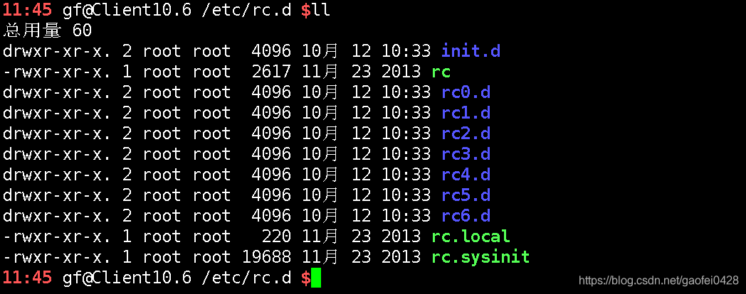 /etc/rc.d/目录下的文件几乎在上一次都有相应的软链接(也就是/etc/目录下),唯一没有的/etc/rc.d/init.d/目录又似乎与/etc/init.d/目录完全相同
