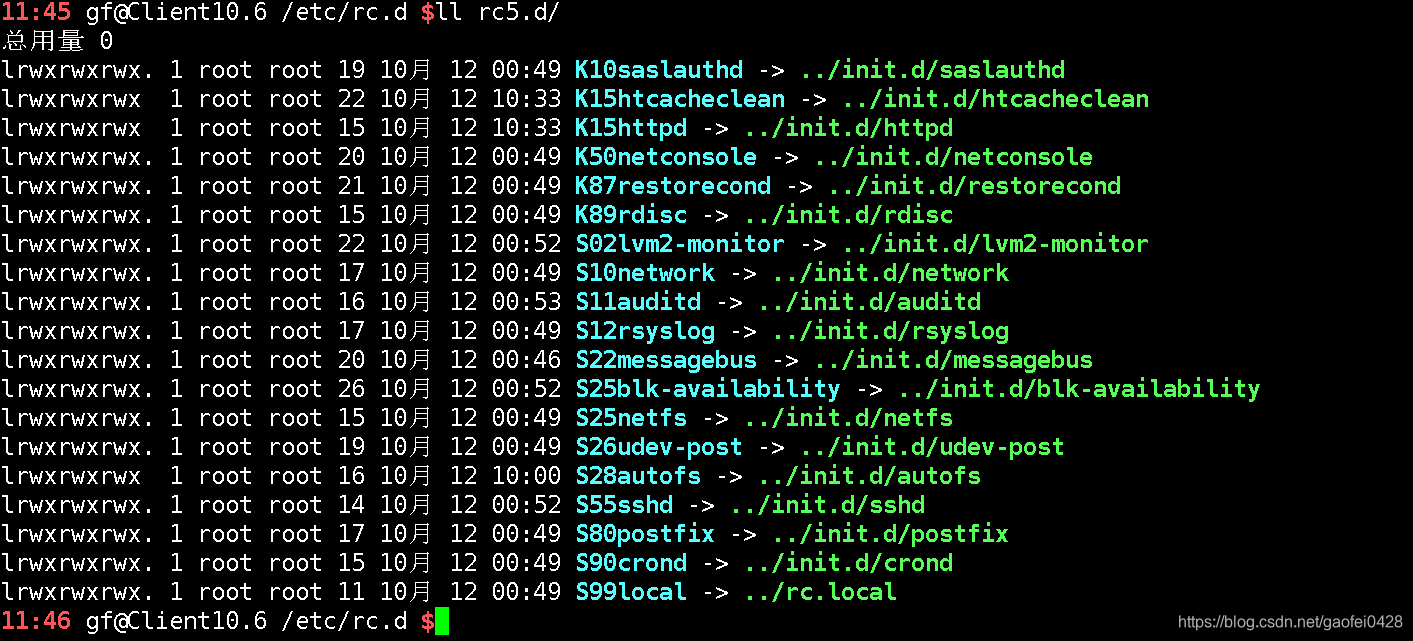 S开头的文件:要启动的服务(脚本),从01开始启动,数字越小优先级越高